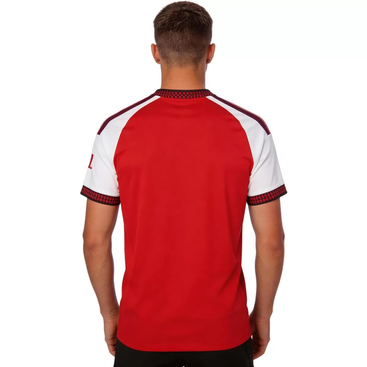 Raglan Sleeves: The iconic crisp white raglan sleeves extend all the way to the collar, framing the red torso in the club’s most traditional silhouette.