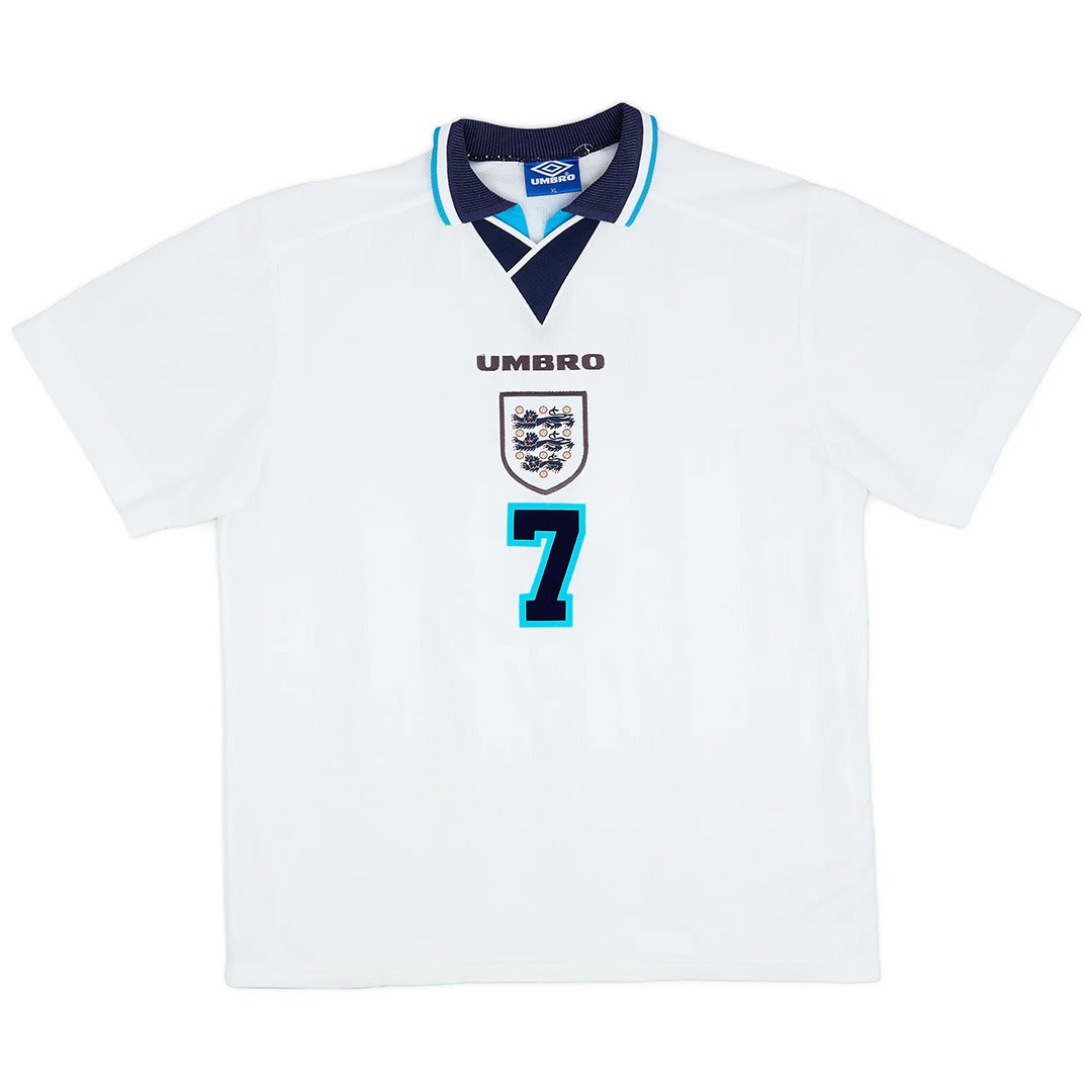 BECKHAM #7 England Retro Jersey Home Euro Cup 1996