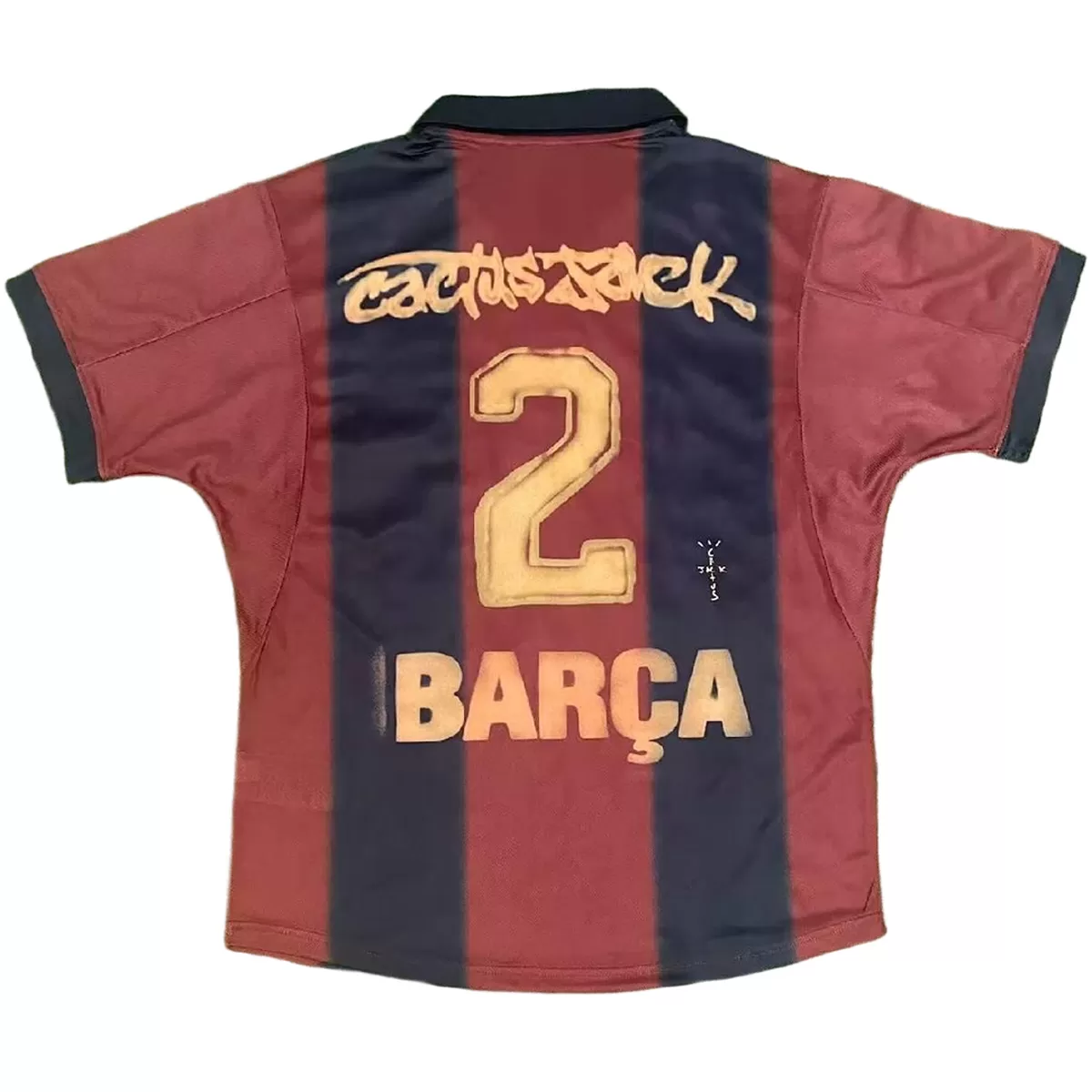 On the back, grafiti-style "Cactus Jack" branding appears above a large faded number "2" and "BARCA" lettering, adding to the streetwear edge.