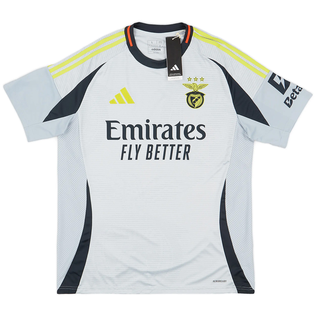 The Benfica 2024-2025 third jersey is gray, combined with fluo-yellow for logos.