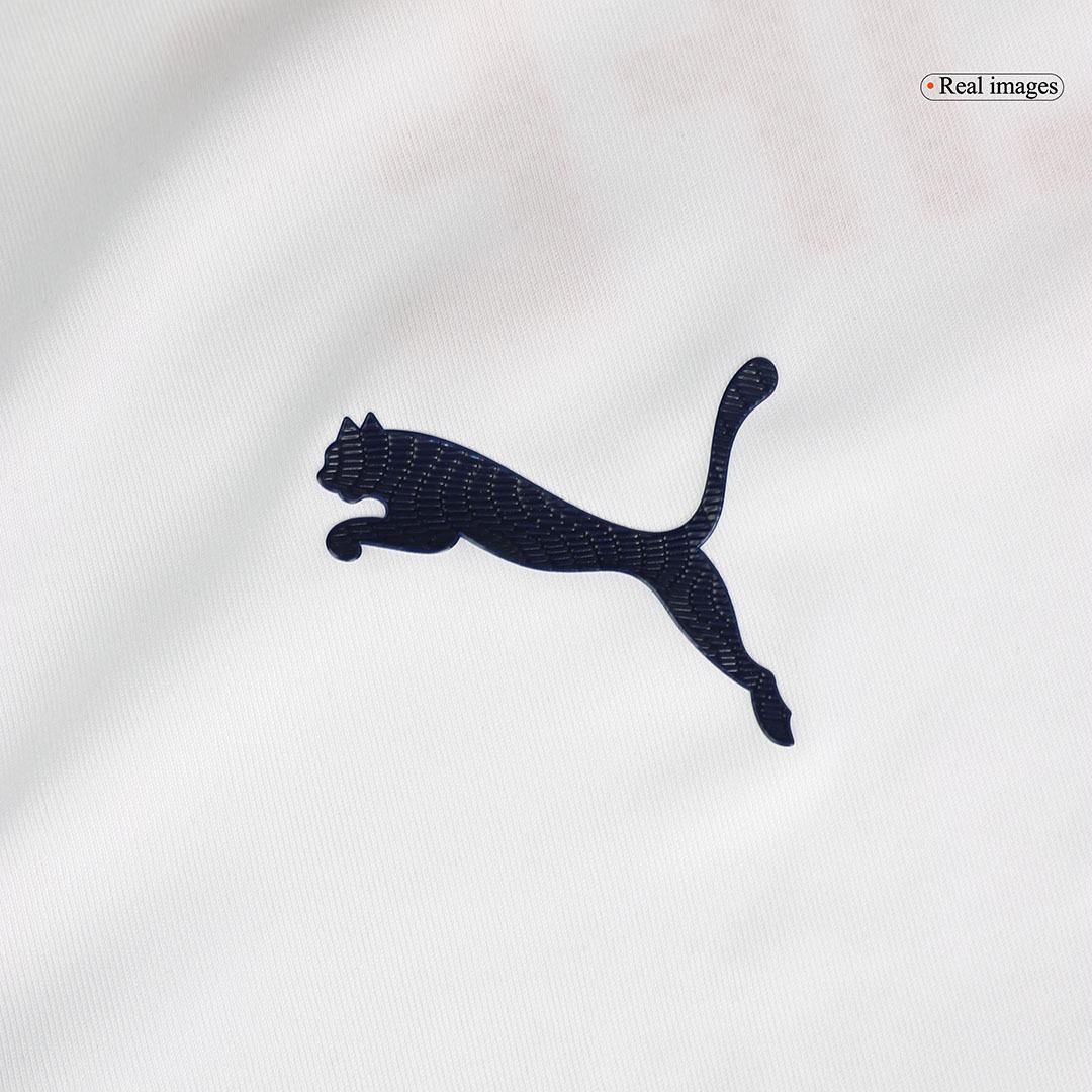 The Chivas 2024-2025 away shirt is mainly white with navy/red logos and applications.