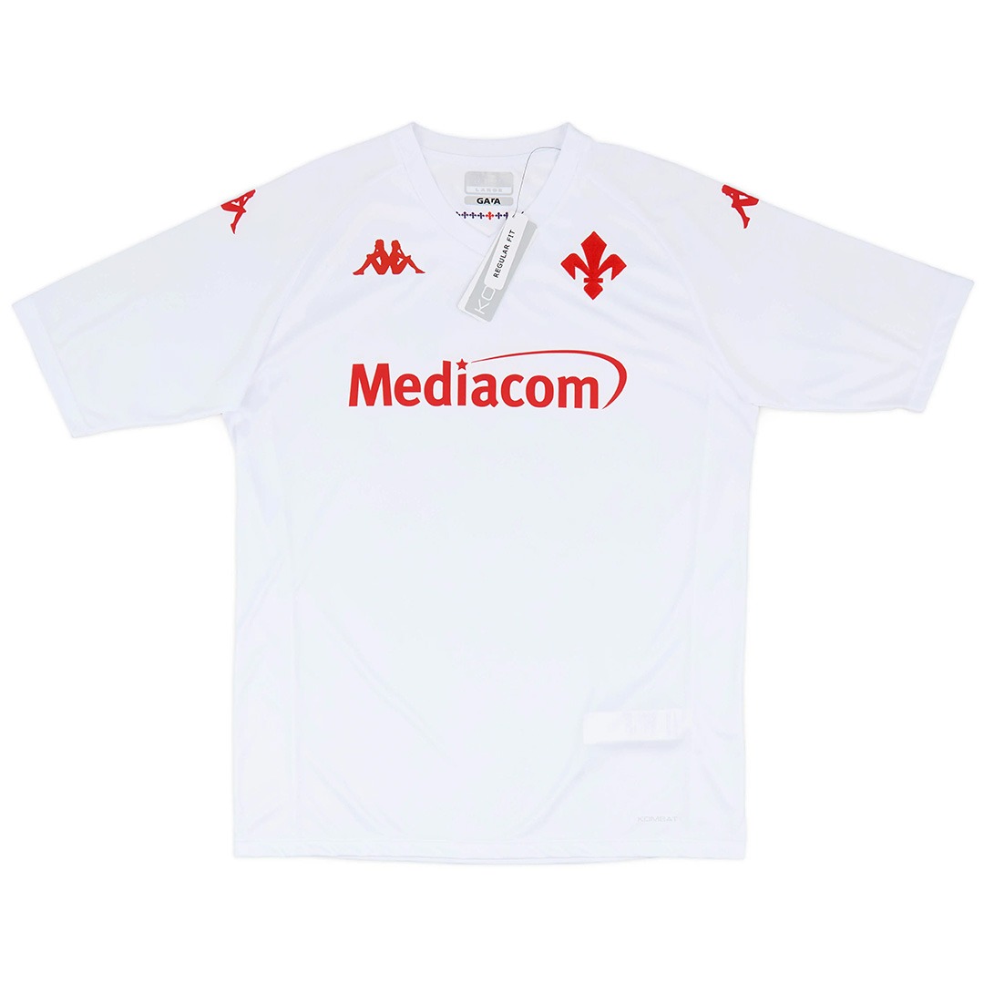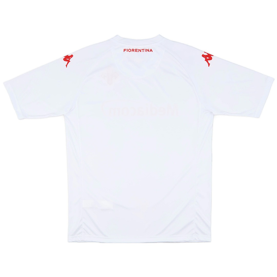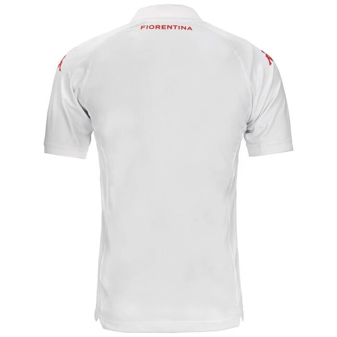 The Fiorentina 24-25 away football shirt has a simple design in plain white with red for the Kappa logo and Fiorentina crest.