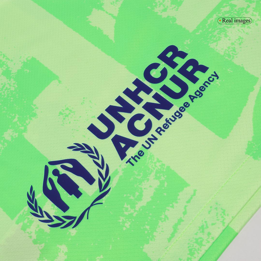 The Barca 2024-25 third shirt boasts a modern color scheme. it combines a light Volt with blue for logos and applications.