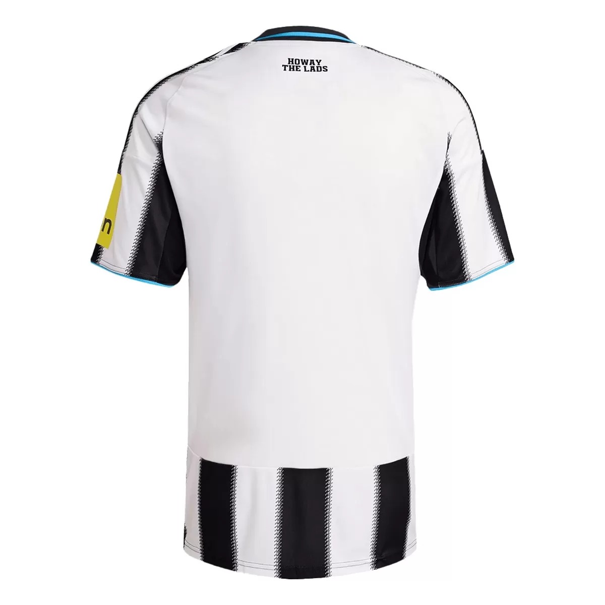 The back of the shirt is mostly white with black elements continuing toward the lower hem, and the phrase “HOWAY THE LADS” appears just below the collar.