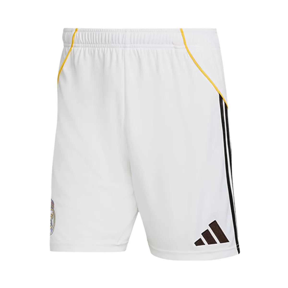 For the 2025-2026 season, Adidas combines the white base with yellow piping, light gray applications, and black logos.