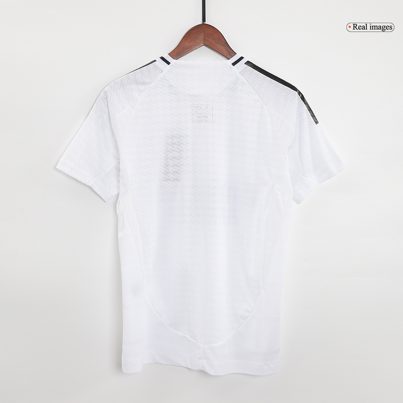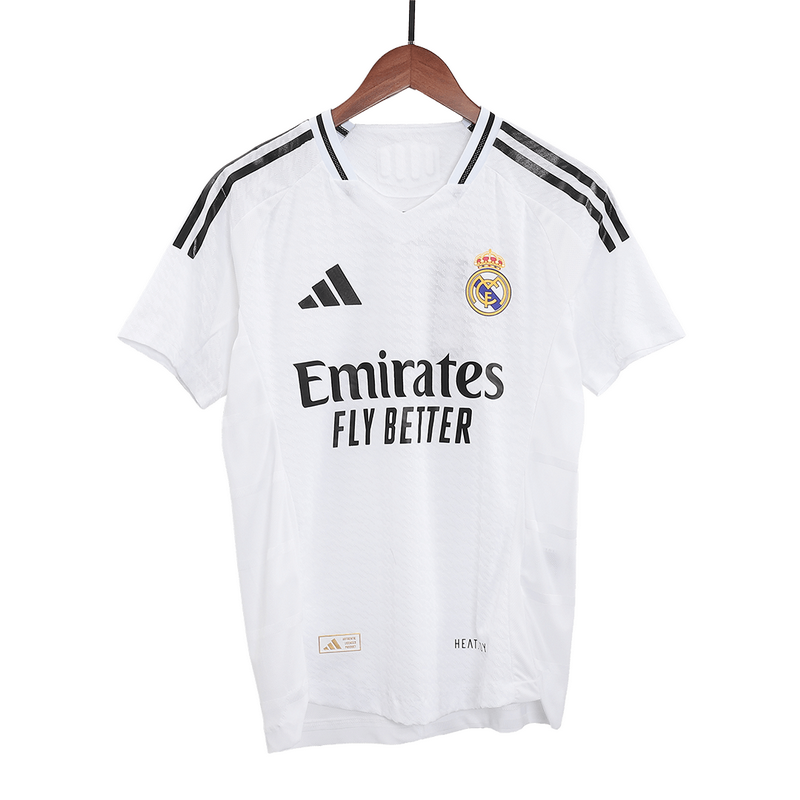 The Real Madrid Club de Fútbol 2024-25 home football shirt has the team's traditional white color, combined with black for the Three Stripes.