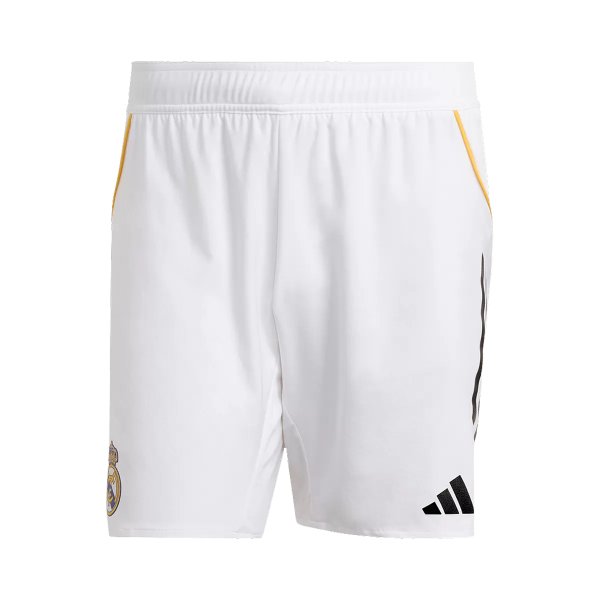 For the 2025-2026 season, Adidas combines the white base with yellow piping, light gray applications, and black logos.