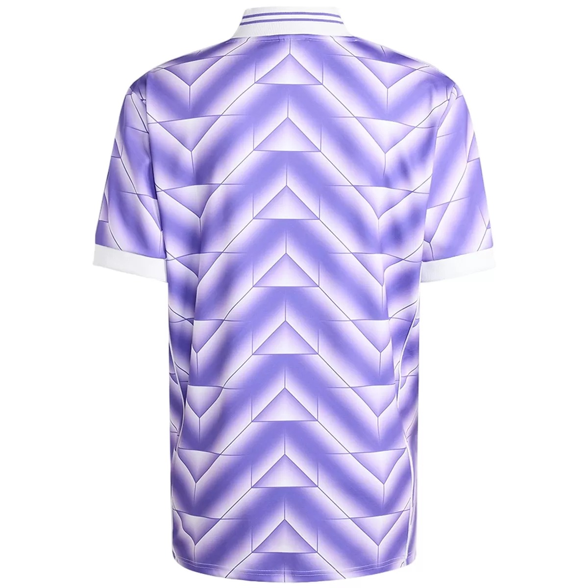 Jersey Design: Real Madrid's 2025-26 lifestyle retro jersey blends the club's heritage with Adidas' retro design from the late 1980s, featuring a white and pastel purple color scheme.