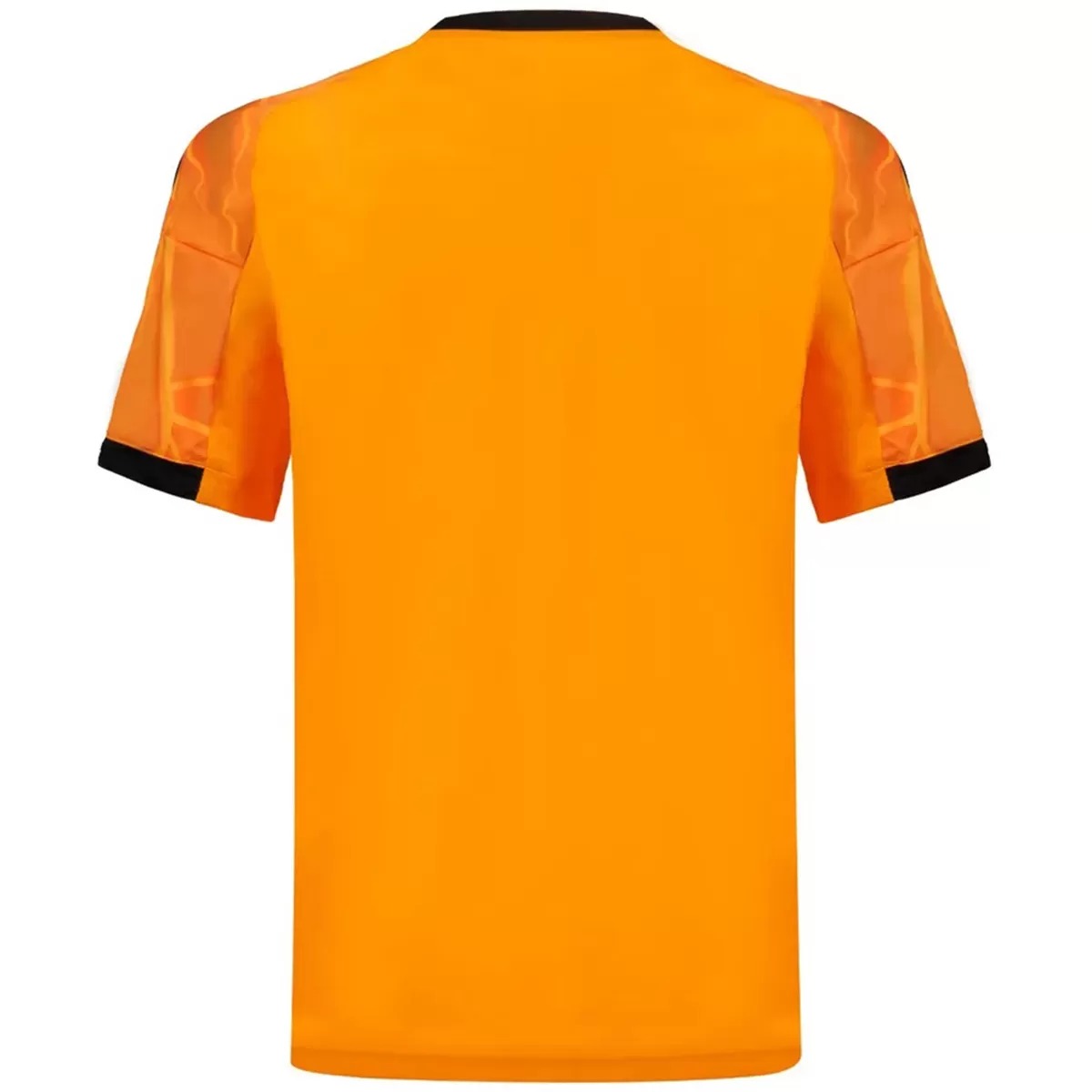 The Adidas Associazione Sportiva Roma 25-26 away football shirt is predominantly orange, combined with black and bright yellow accents.