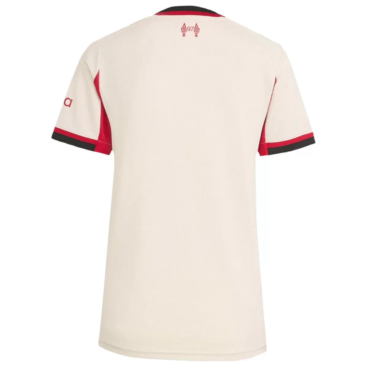Instead of the traditional standalone Liverbird, the crest is placed inside a modern shield shape, giving the shirt a fresh yet iconic feel.