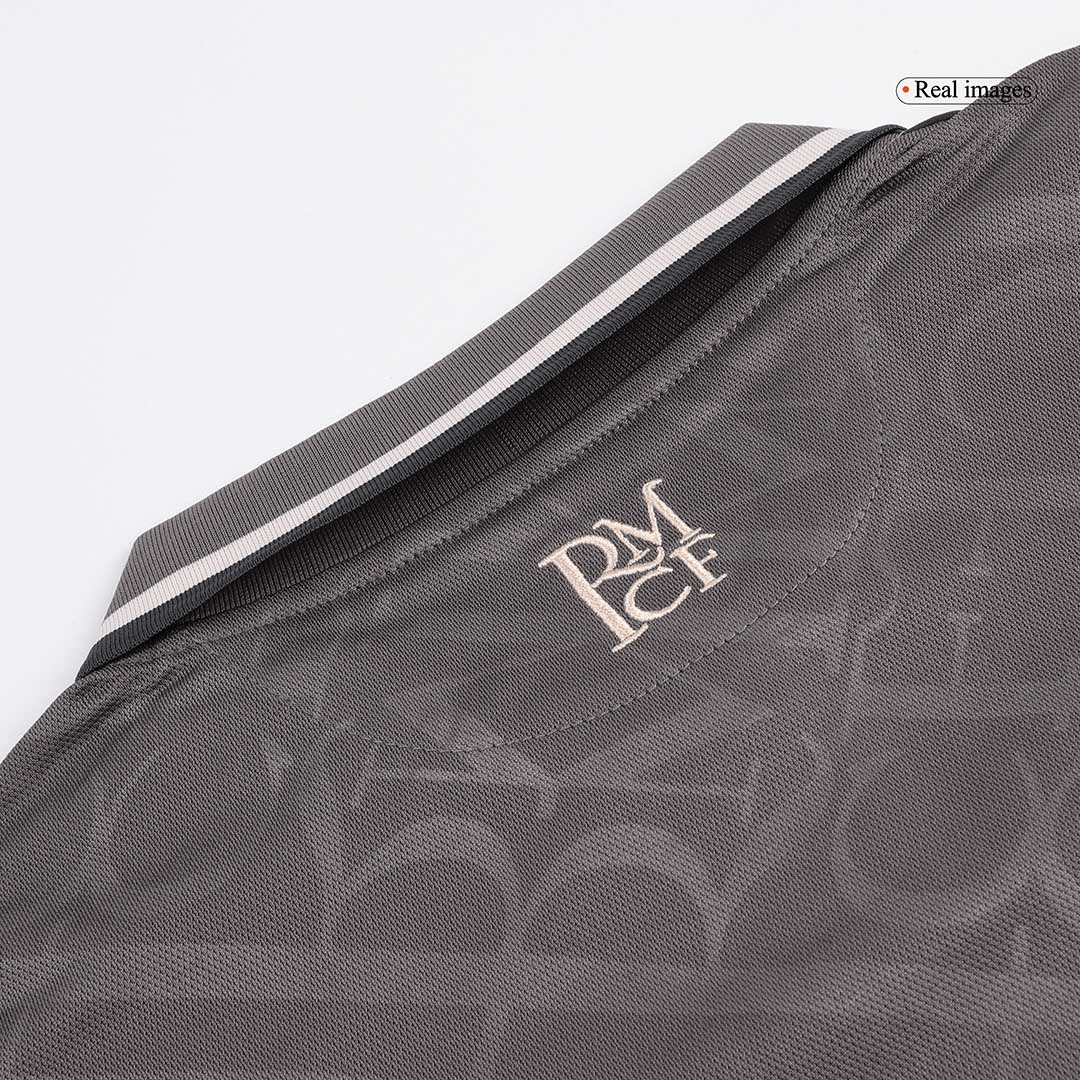 The Real Madrid 2024-25 third shirt has a charcoal brownish-grey (Charcoal) main color combined with 'RMCF' embossing all over the shirt for a unique look.